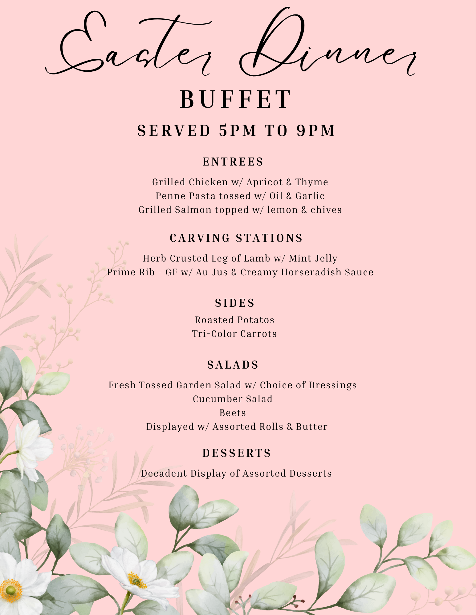 Easter Sunday BRUNCH or DINNER Reservations: